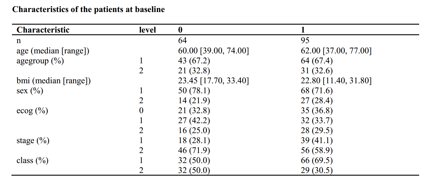 factorVars<-c("agegroup","sex","ecog","stage","class")