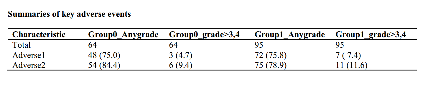 colnames(table2)<-c("Group0_Anygrade","Group1_Anygrade")