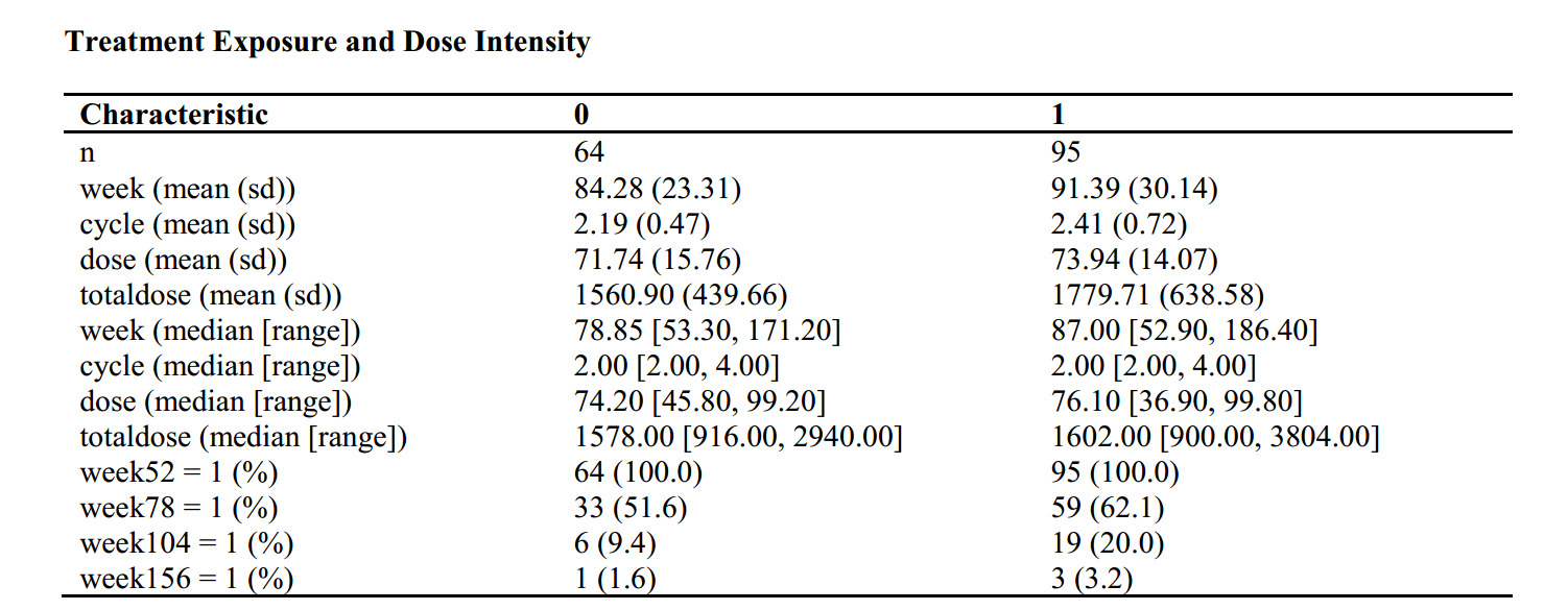 addHeader(rtffile, "Treatment Exposure and Dose Intensity")